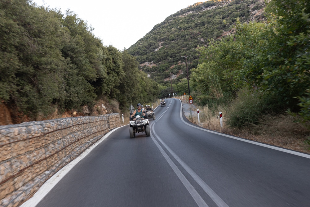 We start from our main office in Hersonissos. After the instructions from the very professional guide Andreas on how to operate and use the Quads, we will go straight to the mountain. Using the tiny road (no traffic) so you can try steering the Quad, accelerating, and braking. Our journey begins.