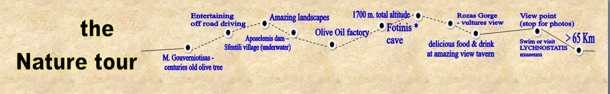 In Potamies village, we’ll take a short break to admire the centuries-old olive tree at the historic Panagias monastery before starting our off-road adventure. Our next brief stop for photos will be at a panoramic viewpoint to see the submerged village of Sfentili, the Aposelemis dam, and the Lagada area, which is full of olive trees. Here, we’ll also learn about and observe the production of unique Cretan olive oil at a local factory.
